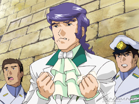 当初被称为“白色人偶”或是“翘胡子的MS”的“白色恶魔”,在“TURN ∀”当中首先认知那就是“高达”的人也是他哦~这搞不好是过去从哪里刷进脑袋的记忆吧(心灵创伤? 睡眠学习?)。总而言之,对于“打倒高达”这件事情异常执着心并且怀抱恨意&敌意,不时怒吼“高达小妞!给我滚出来啊~!!”“呼呼呼,白胡子的混蛋!”这些(意味不明的喊话)同时对着高达展开全力暴走攻击。