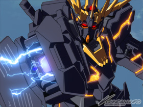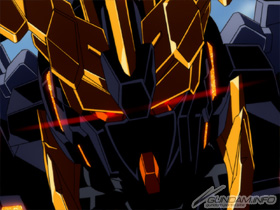 具有与1号机相同的NT-D系统(但并非依照驾驶员操纵而必须在特定条件才发动的控制系统)机体装有可以欺骗赛可谬(精神感应(赛可谬)(新人类感应)系统机能的特殊晶片骨架)构造,发光色为眩目的金色,而他的真实姿态破坏模式(将驾驶员的想法直接反映在机体上的机能)发动时头部的天线会变成像狮子鬃毛的形状。和以独角兽外型为主的1号机独角兽相反,全身装甲色都是漆黑色(1号机独角兽则是全身纯白!)这样不论怎么说都好像很强(?)的设计再加上除了1号机的优点都有之外还+α的性能与完成度都凌驾主角机。做为永远的对手或是宿敌机都具备无法掩饰威风八面的风格~。