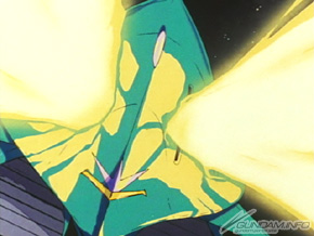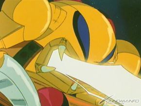 正如所见,两手长着巨大电热镰刀的这台机体,高速移动后以扩散MEGA粒子炮攻击,从敌方的死角开始急遽加速,以如此凶猛的气势加上巨大的电热镰刀将敌机一刀两断!想定如此独特又暴力有如拦路砍人(?)的攻击方法并且开发完成,但实际上因为运动性能不佳,结果没有投入量产(……)。