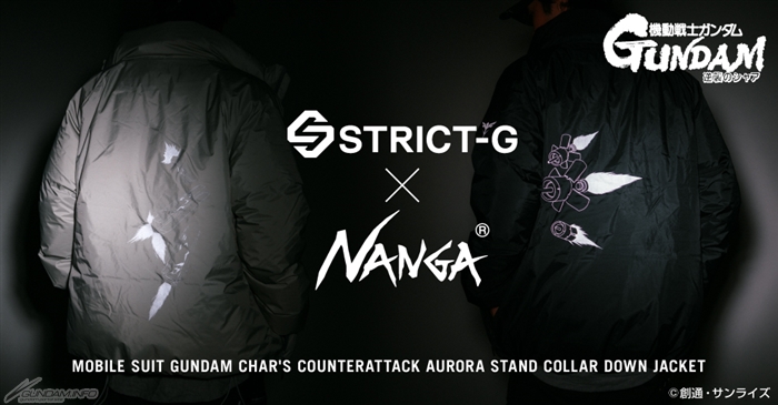 采纳高达世界观的服饰品牌“STRICT-G”和MADE IN JAPAN户外品牌 “NANGA)”联手推出的“‘机动战士高达 逆袭的夏亚’AURORA STAND羽绒外套”,将于11月4日(六)发售,共有两种款式。每件售价60,500日圆(含税)。
