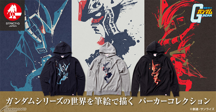 “STRICT-G JAPAN‘机动战士高达’笔绘风帽T”3款将于11月18日(六)起,在采纳高达世界观的流行服饰品牌商店“STRICT-G”发售。售价为各15,400日圆(含税)。