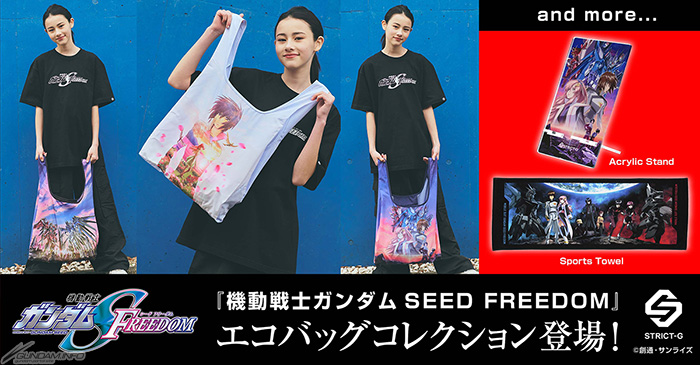 由采纳高达世界观的成衣商店“STRICT-G”推出,‘机动战士高达SEED FREEDOM’的“环保袋”3种、“主视觉 压克力立牌”、“长条视觉 运动毛巾”的预约贩售,于今天2月16日(五)13:00开放。
