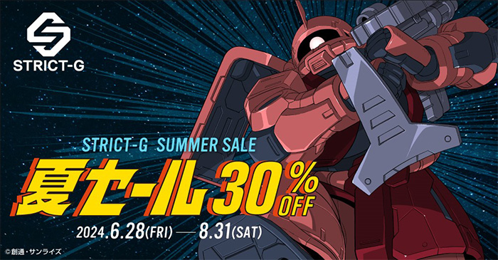 采纳高达世界观的成衣商店“STRICT-G”各大门市,以及Premium Bandai“STRICT-G Online Store”,今日6月28日(五)起展开“2024 SUMMER SALE”。