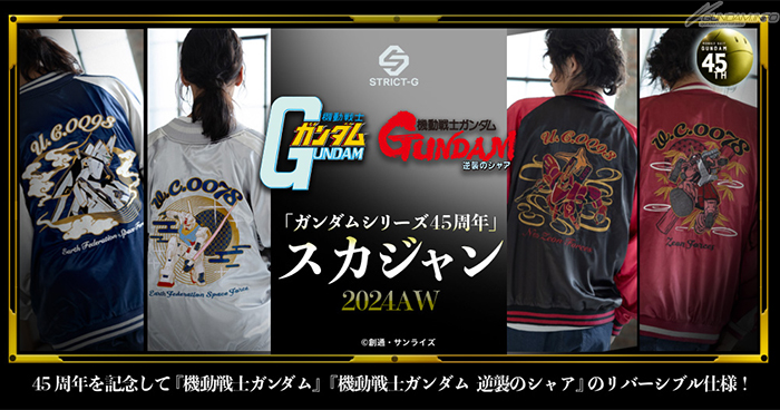 “STRICT-G‘高达系列’45周年横须贺外套”共2种,将于今天9月20日(五)13:00起在PREMIUM BANDAI内“STRICT-G Online Store”开始开放预约。售价为各35,200日圆(含税)。