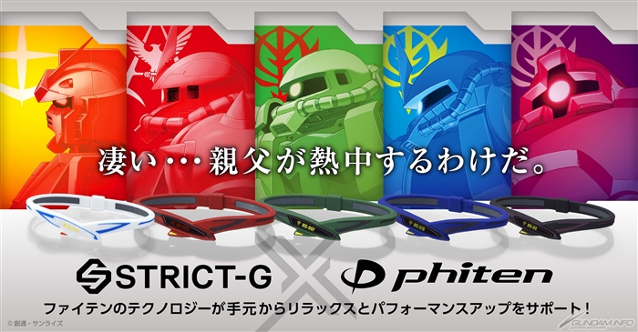 采纳高达世界观的成衣商店“STRICT-G”,将于明日10月3日(六),发售和“Phiten”合作的5种“‘机动战士高达’RAKUWA交叉手环”。