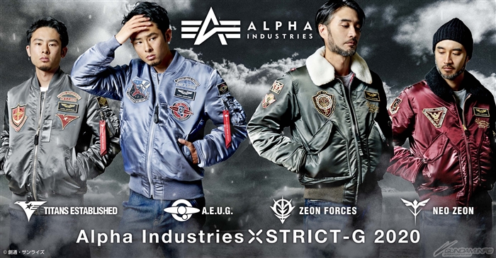 采纳高达世界观的成衣商店“STRICT-G”,和军事时尚品牌“ALPHA INDUSTRIES”合作的4款‘机动战士Z高达’、‘机动战士高达’和‘机动战士高达 逆袭的夏亚’服饰将于10月31日(六)开始贩售。