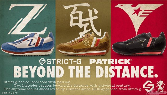 本合作商品中使用了“PATRICK”代表性超人气款式之一的“MARATHON”,共有“Ζ高达”“百式”“精神感应高达”3种登场。
