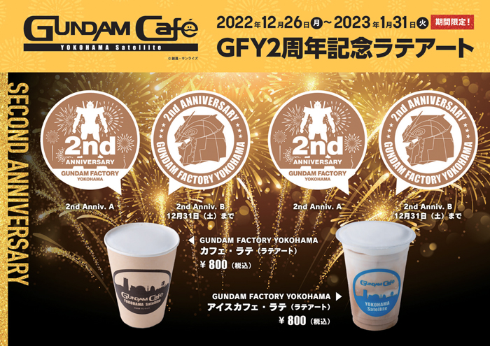 可以体验到“驱动18m实体大高达”梦想实现的设施“GUNDAM FACTORY YOKOHAMA”(GFY),“GFY2周年纪念拉花”现正在GUNDAM Cafe YOKOHAMA Satellite好评贩售中。