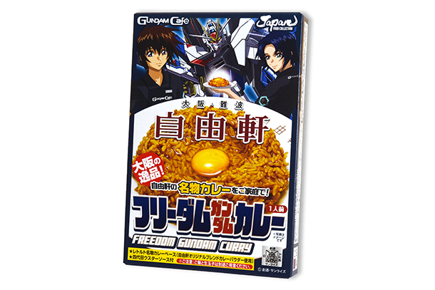 “难波自由轩名产咖哩”阵容有”自由高达咖哩”和”高达是自由(轩)的!咖哩”,“红姜天妇罗柿种”阵容有”夏亚”和”夏亚渣古”,包装上有‘机动战士高达’及‘机动战士高达SEED’的设计。