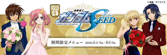 高达官方咖啡厅“GUNDAM Café”各门市、大阪“GUNDAM SQUARE”,将自6月11日(四)起开始提供PICK-UP-G系列“‘机动战士高达SEED’期间限定餐点”。