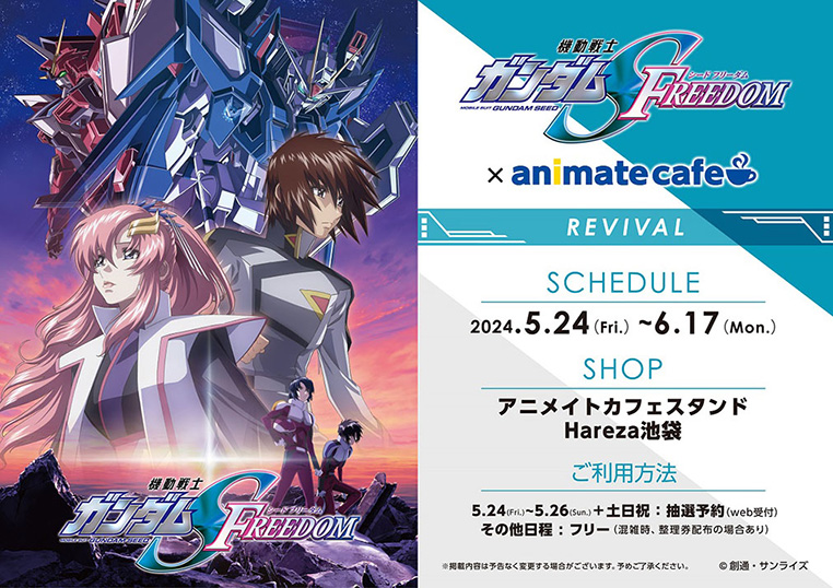 于今年1月举办,广受好评的‘机动战士高达SEED FREEDOM’和Animate cafe联名活动,决定举办复刻版。