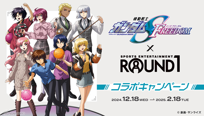 “电影‘机动战士高达SEED FREEDOM’×ROUND1 联名活动”,决定于12月18日(三)起在日本国内ROUND1举办。活动期间至2025年2月18日(二)为止。