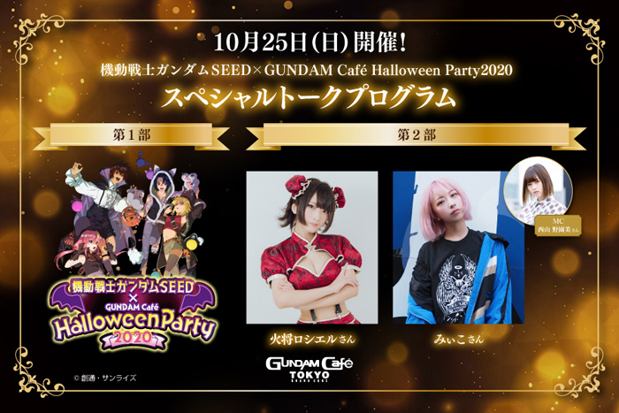互动型娱乐主题餐厅设施“GUNDAM Café TOKYO BRAND CORE(GUNDAM Café TOKYO)”,10月25日(日)19:00起将举办“‘机动战士高达SEED × GUNDAM Café HalloweenParty 2020’特别座谈节目”。
