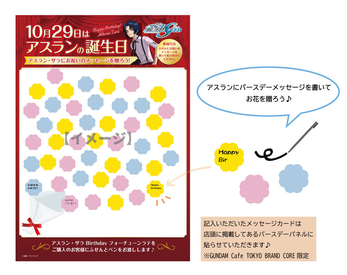 此外,互动型娱乐主题餐厅设施“GUNDAM Café TOKYO BRAND CORE”,解将实施特别企划“为阿斯兰进行更多的庆祝吧!‘话语花束大作战’”。