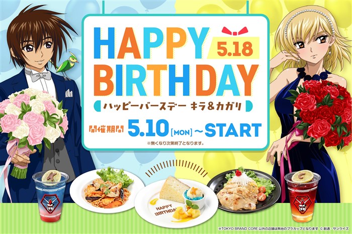 为了纪念‘机动战士高达SEED’的基拉・大和和卡嘉莲・由拉・阿斯哈于5月18日(二)迎接生日,“附赠数量限定生日图卡的餐点”于5月10日(一)起登场。