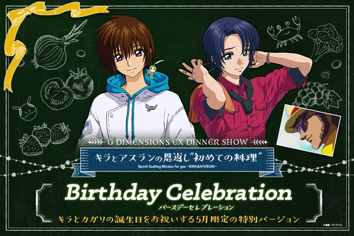 于3月15日(一)升级的G DIMENSIONS EX DINNER SHOW“基拉和阿斯兰的报恩“第一次的料理” Version2.0”的期间限定版本“基拉和阿斯兰的报恩“第一次的料理” Birthday Celebration”,将在今天5月10日(一)至20日(四)期间限定举办。