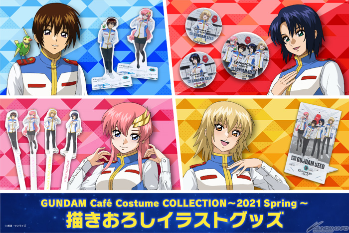 “GUNDAM Café Costume COLLECTION ~2021 Spring~”采用基拉・大和、阿斯兰・萨拉、卡嘉莲・由拉・阿斯哈、拉克丝・克莱茵等人身着GUNDAM Café制服的特别绘制插图。