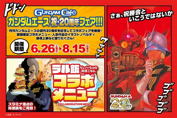 本活动是和漫画杂志“GUNDAM A”好评连载的“拉尔饭 ~兰巴・拉尔的罪恶感餐点~”合作,除了有3款料理和1款饮品外,以及1款GUNDAM A 20周年纪念饮品登场。