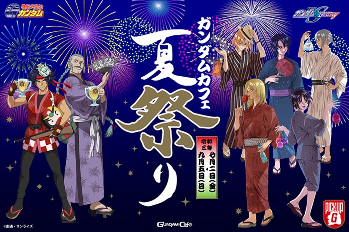 “GUNDAM Café夏日祭典”预计7月2日(五)开跑。今年夏天有‘机动武斗传G高达’的多门和亚洲天王、以及‘机动战士高达SEED DESTINY’的真、雷、阿斯兰、海涅、伊渣古5人穿着和服登场。