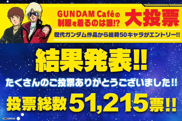 投票总数51,215票!“穿上GUNDAM Café制服的会是谁!?大投票!”结果发表!