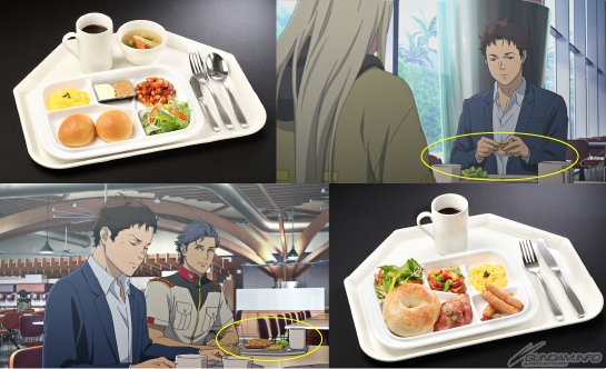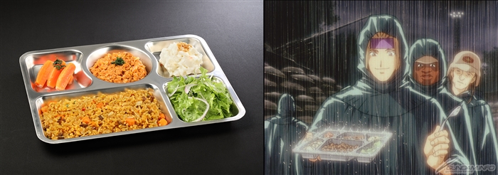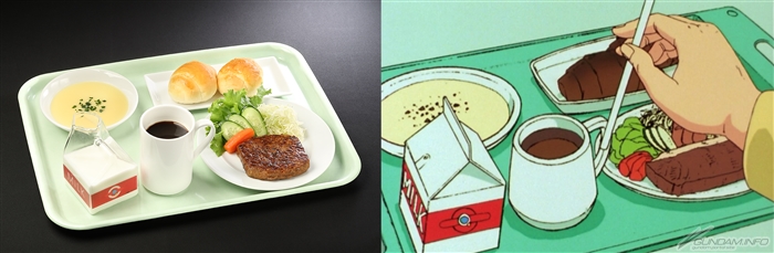 “再现餐点”是从作品中的用餐场景,撷取“食材的尺寸感”“量”“摆盘方式”“餐具的质感”“时代背景”,在SUNRISE的监修下进行开发,经过些微的调整后完成,是花费非常多心思制作的餐点。