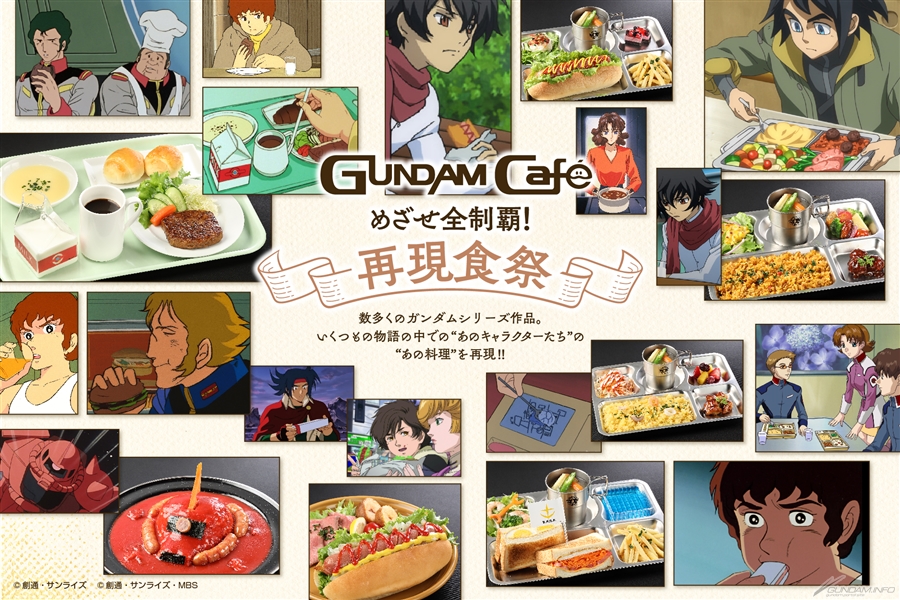 首先是推出GUNDAM Café引以为傲,重现动画作品中登场的餐点及MS形状的“重现餐”45种的“目标全至霸!重现餐祭”,接着依序会有将过去提供的招牌餐点复活・复刻的“纪念菜单”、有24名角色新绘插图设计的“来店纪念纪念款杯垫”、发售纪念商品“纪念款精品”等多种企划预定推出。
