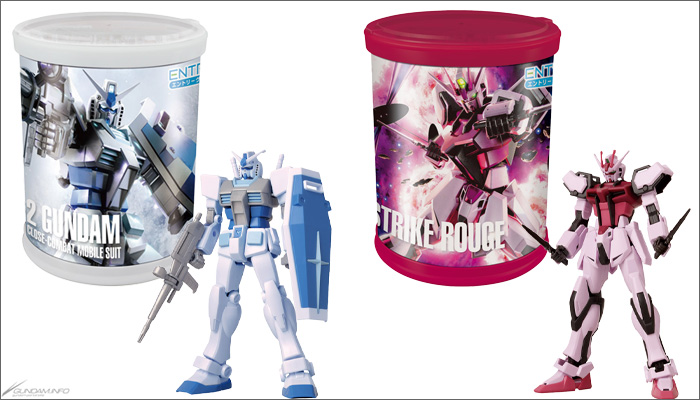 本商品“高达模型圆形BOX”是在附盖子的圆筒型盒装内附有模型和零食的套装,共有“A:高达”和“B:嫣红突击高达”2种登场。