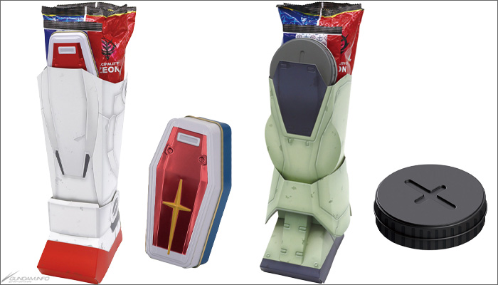 除了饼干之外,“渣古”附有机关枪弹型罐子,“高达”的则有盾牌型的罐子。