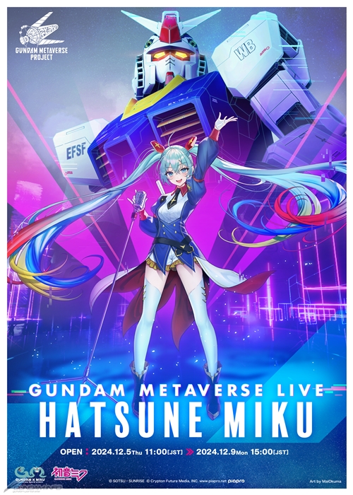 12月5日(四)开始的“高达元宇宙 第3次期间限定开放”,预定由初音未来于元宇宙内举办演唱会。活动期间中可以在元宇宙商店预约・购买的初音未来联名商品的情报也公开了。