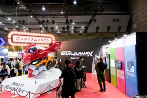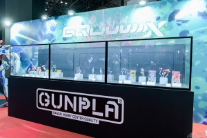 万代南梦宫集团摊位,推出以“‘机动战士Gundam GQuuuuuuX’&高达模型45周年”为首的大量展示。摊位内除了展示玛秋、娜安、修治立牌外,还有“高达模型 1/1 GquuuuuuX头部”“高达模型 1/10 GQuuuuuuX立像”“高达模型 1/10 红色高达立像”登场。