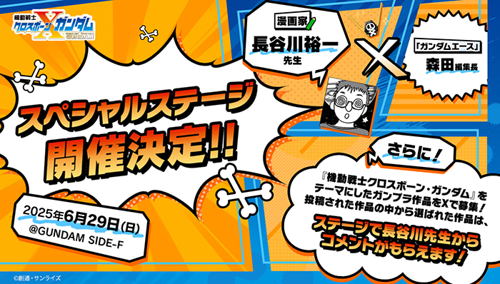 此外,我们计划在 X 帖子上举办一个角落,以“Crossbone高达”系列为主题征集高达模型作品示例,我们将能够直接从长谷川教授那里获得评论。