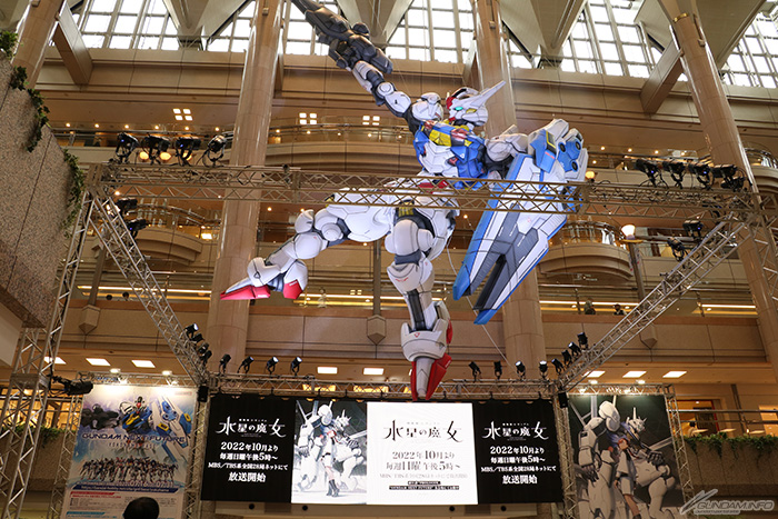 SAKATA SEED Garden Square首次展示了‘水星魔女’主角机“风灵高达”全高约7m的气球。每小时00分、30分还会藉由影片及灯光来做特别表演,所以请务必配合演出时间前往看看。