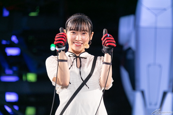 对体验后的感想表示“这好厉害啊!不禁让我觉得刚刚体验了相当难得的事呢,感觉就像“我就是高达!”这样的心情(笑)”并露出了满脸的笑容。