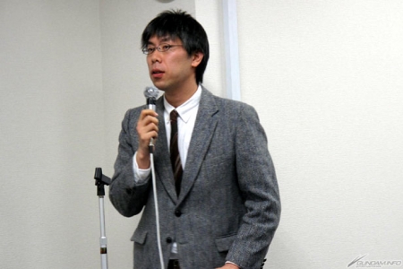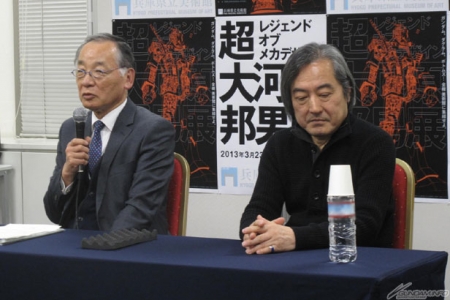 接着大河原述说了自己的简历,并透露他刚开始设计师的工作时,曾在神户停留一个月进行研修,发生阪神淡路大地震之后,当时还有个复兴象征的团体“ANIMATION神户”在,并且在那获得了特别赏等等许多有关神户的话题。关于展览会本身,则表示“希望在展期当中可以有更多的人来参观”。