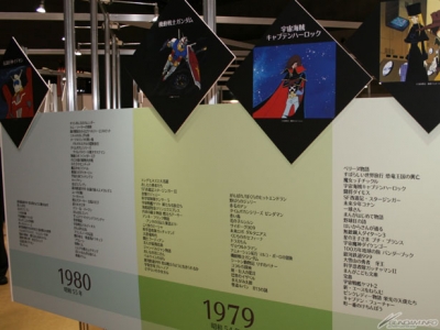 ▲“电视动画50周年企划展示区”中,有电视动画全作品的年表与当时放映时发售的钢普拉等等稀有产品展示喔!