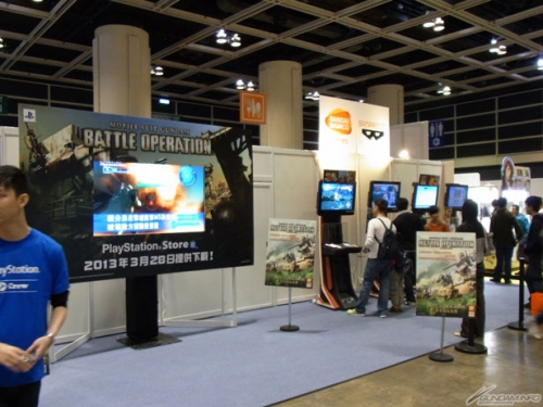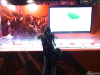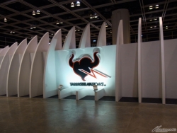 ▲在NAMCO BANDAI GAMES的摊位上,设置了从3月28日起在香港・台湾・新加坡开始服务的PS3版专用网路游戏“机动战士