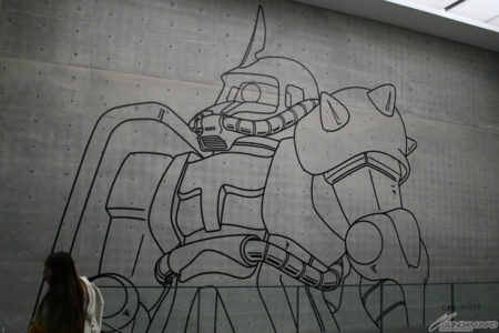 ▲前往会场的楼梯上,有巨大的“夏亚专用渣古”描绘在墙壁上。