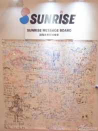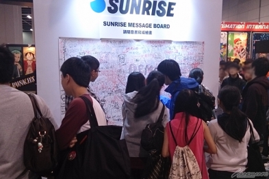 ▲SUNRISE摊位上设置的涂鸦墙,写满了香港动漫迷们的热情!