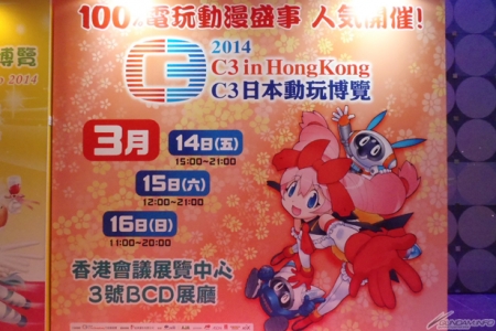 聚焦在日本的动画、漫画以及J-POP等日本的流行文化的大型活动“C3 in HongKong 2014(C3日本动玩博览2014)”,自3月14日(五)起到3月16日(日)止共举办3天,地点在香港会展中心。
