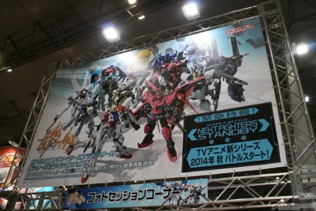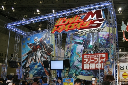 会 场内的BANDAI摊位中,展示了将于2014年秋天开始播出TV动画新作的‘高达创斗者’高达模型,也举办了“高达TRY AGE”的免费试玩。此外,BANDAI NAMCO GAMES的摊位中也有3DS“高达TRY AGE SP”的试玩区,这款游戏预定于7月17日(四)发售,展示的内容十分丰富。
