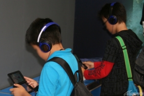 ▲好评运作中的电子卡片游戏“高达TRY AGE”摊位中,举办了国中生以下的玩家们可以参加的免费试玩活动,现场大排长龙盛况空前!