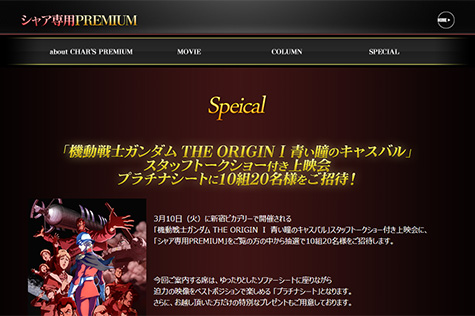以夏亚风格学习的“S级”概念网站“夏亚专用PREMIUM”,开始了将会抽出招待10组20名,可以在舒适的沙发上观赏充满迫力影像的最佳位置“白金座席”的应募受理。