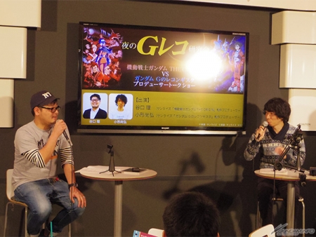在这天活动里,‘机动战士高达 THE ORIGIN’的制作人谷口理,与‘高达 RECONGUISTA IN G’的制作人小形尚弘,互相针对对方作品展开热烈讨论。
