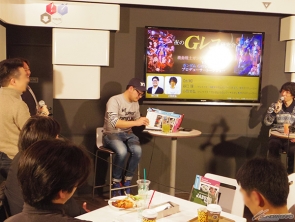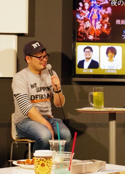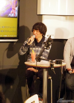 两位制作人首先打过招呼后,因为正逢“夏亚・阿兹纳布尔祭典”期间中,所以谷口点了“德兹尔・萨比~抹茶&绿茶碳酸酒精饮料~”、小形点了“克劳蕾.哈蒙~琴酒&紫罗兰香甜酒基酒~”。和观众一起干杯揭开座谈会的序幕。