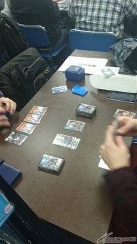 现场也看到许多红・绿・黄的牌组。此外也有混色的牌组,决胜战是绿色牌组和黄色牌组的对决。