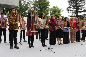 ▲舞台上由留学生演奏传统乐器和展现传统服装,介绍了多样的文化!