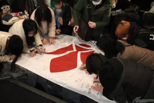活动结束後,让粉丝们写下留言的团旗也登场,许多的来场者写下对作品和角色的讯息。