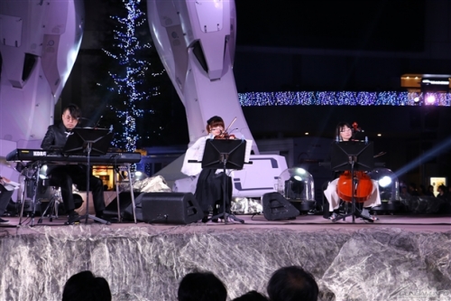 代表者们的问候结束後,进行由弦乐三重奏演出的『机动战士高达』特别组曲,由TV动画最新作『机动战士高达铁血的奥尔芬斯』负责音乐的横山克编曲,用「哀 戦士」丶「めぐりあい」丶「翔べ!ガンダム」等3首曲子,配合『机动战士高达』特别编辑影片进行现场演奏。