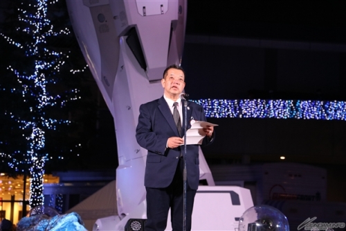 纪念会一开始,先在墙面的萤幕映照出实体大高达立像的回顾影片,接着由各相关团体的代表者向大家问候。