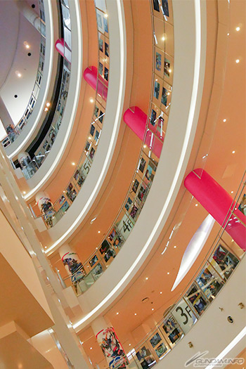 此外,除了展示高达、独角兽高达、能天使高达、攻击高达的1/10立像之外,4楼到6楼的玻璃上也有约2m的巨大哈啰气球。而4楼的「娱乐空间」中也设置了能拍摄宛如进入动画中的立体照片,共有4种不同的「3D错觉场景」。4楼也展示了最新商品,请在馆内漫步享受高达的世界吧。